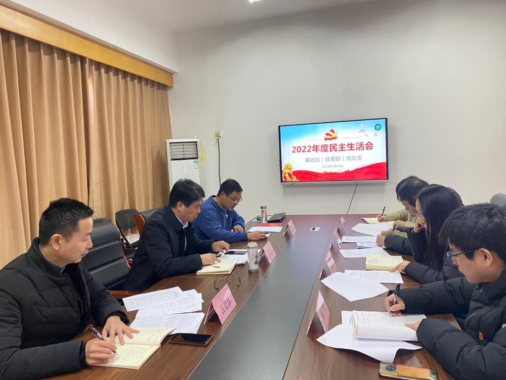 2月14、16日,基础部(体育部)党总支和马克思主义学院党总支分别召开民主生活会,学院党委书记简祖平到会指导。会议分别由基础部(体育部)党总支书记汤波和马克思主义学院党总支副书记、院长马万顺主持。