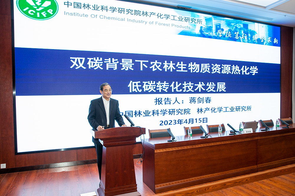 本次研讨会特邀中国工程院蒋剑春院士出席并作“双碳背景下农林生物质资源热化学低碳转化技术发展”的学术报告。他的报告观点新颖、研究领域前沿,对双碳背景下农林生物质资源的研究与开发利用具有重大指导意义。