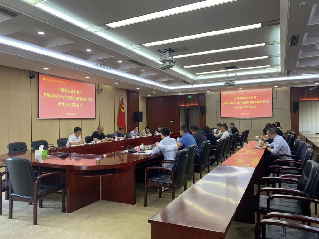 5月23日,学院召开2022年度部门预算执行情况审计进点工作会议。此次审计工作是根据省农业农村厅2023年度内部审计计划安排,对2022年度学院预算执行情况进行审计。厅审计组组长张卫宁,审计组专家陈丹、陈建、严云彬,学院党委副书记、院长潘永圣,副院长贾君出席了会议。