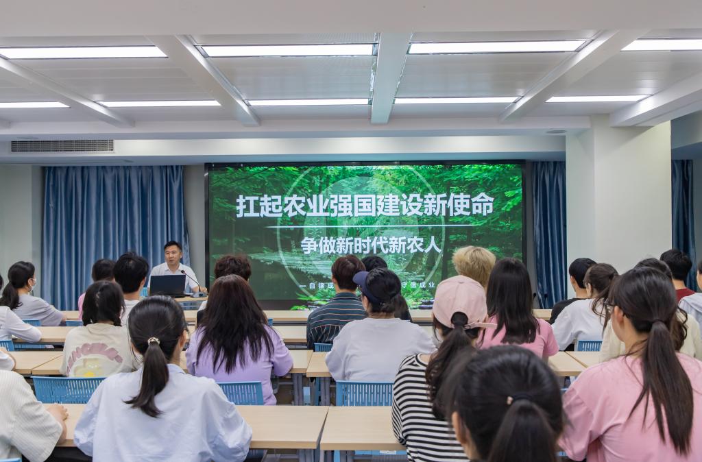潘永圣围绕“为什么要建设农业强国”“建设什么样的农业强国”“怎样建设农业强国”“如何投身建设农业强国伟大事业”等四个方面,深入浅出地带领同学们理解“扛起农业强国建设新使命 争做新时代新农人”的内涵与意义,并勉励同学们运用所学专业,探索智慧农业发展新路,为推进乡村振兴贡献青春力量。