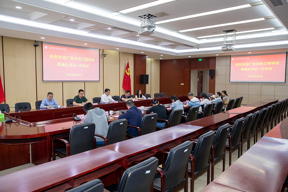 6月6日上午,广西农牧工程学校党委书记、校长蒋漓生等一行8人来必赢官网考察交流。学院党委书记简祖平、相关部门同志参加了座谈。