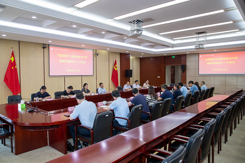 6月14日下午,南京工业职业技术大学党委常委、副校长崔新明等一行10人来必赢官网考察交流。党委副书记、院长潘永圣及相关部门负责同志参加了座谈交流。
