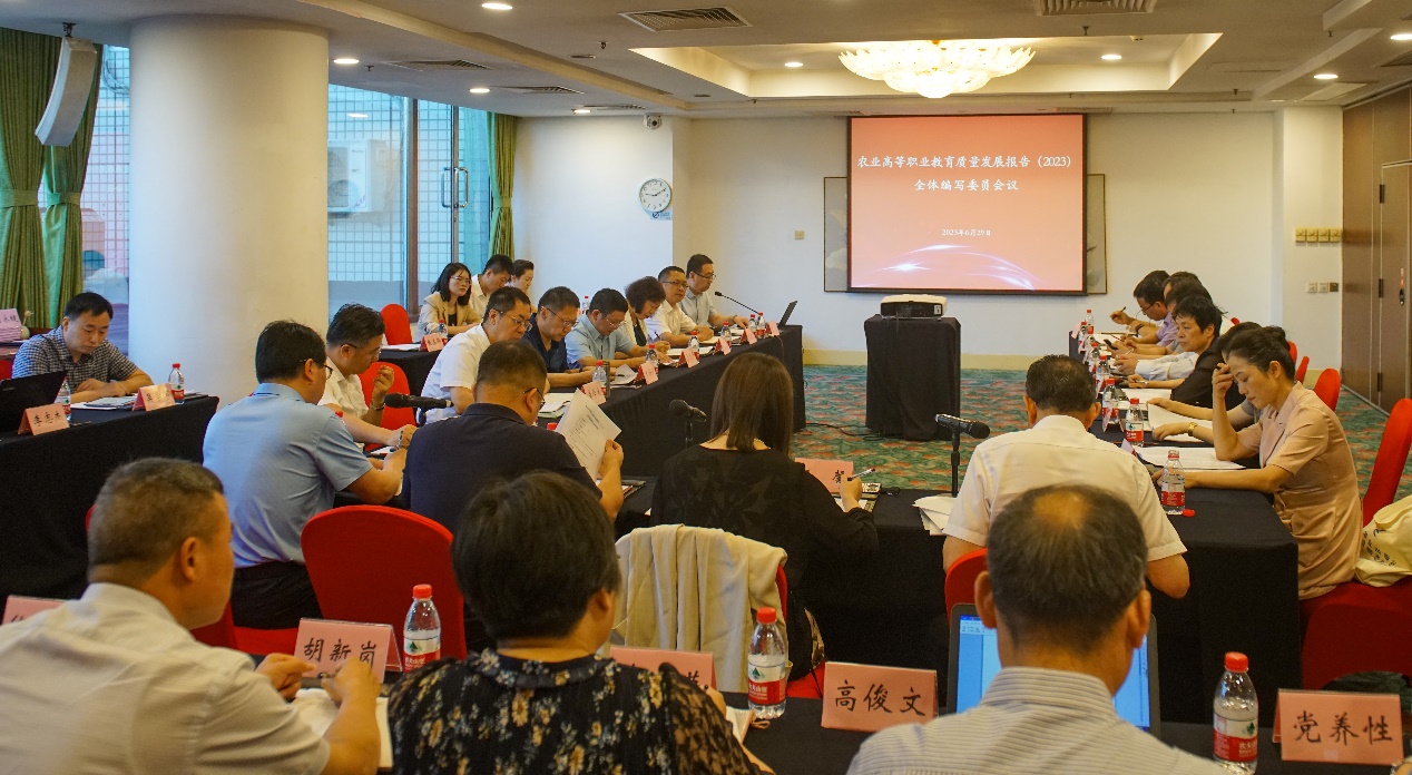 6月28日至29日,由必赢官网牵头组织的《农业高等职业教育发展报告(2023)》(以下简称《报告》)编写会议在北京召开。农业农村部科技教育司教育处调研员王馨,教育部职业教育与成人教育司院校发展处副处长李恒,中国农业出版社党委书记、社长刘天金,中国农业出版社副社长刘爱芳,教育部职成司干部桂敏,学院党委副书记、院长潘永圣,山东畜牧兽医职业学院党委副书记、院长李学太等18所全国高水平农业职业院校的39位编委参加了会议。会议由学院党委书记简祖平主持。