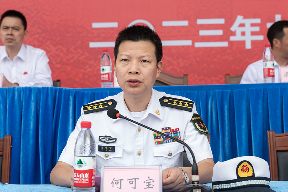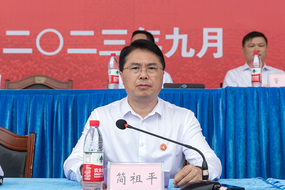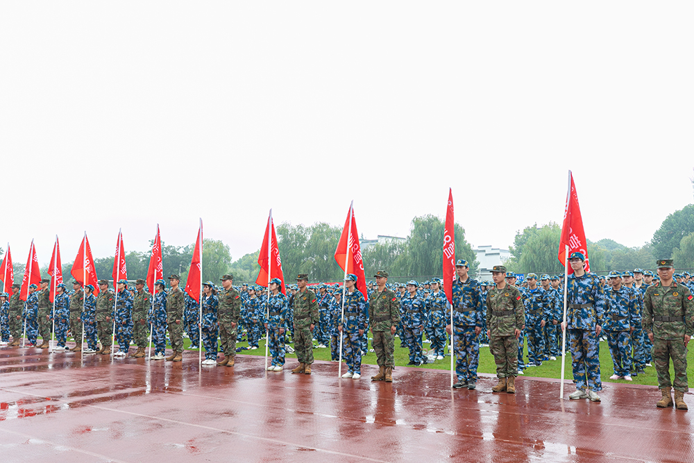 党委书记简祖平向2023级新生军训团团长授军训团团旗,宣布学院2023年新生军训正式开始。仪式现场,军训教官代表、教师代表、在校生代表、新生代表分别作了发言。