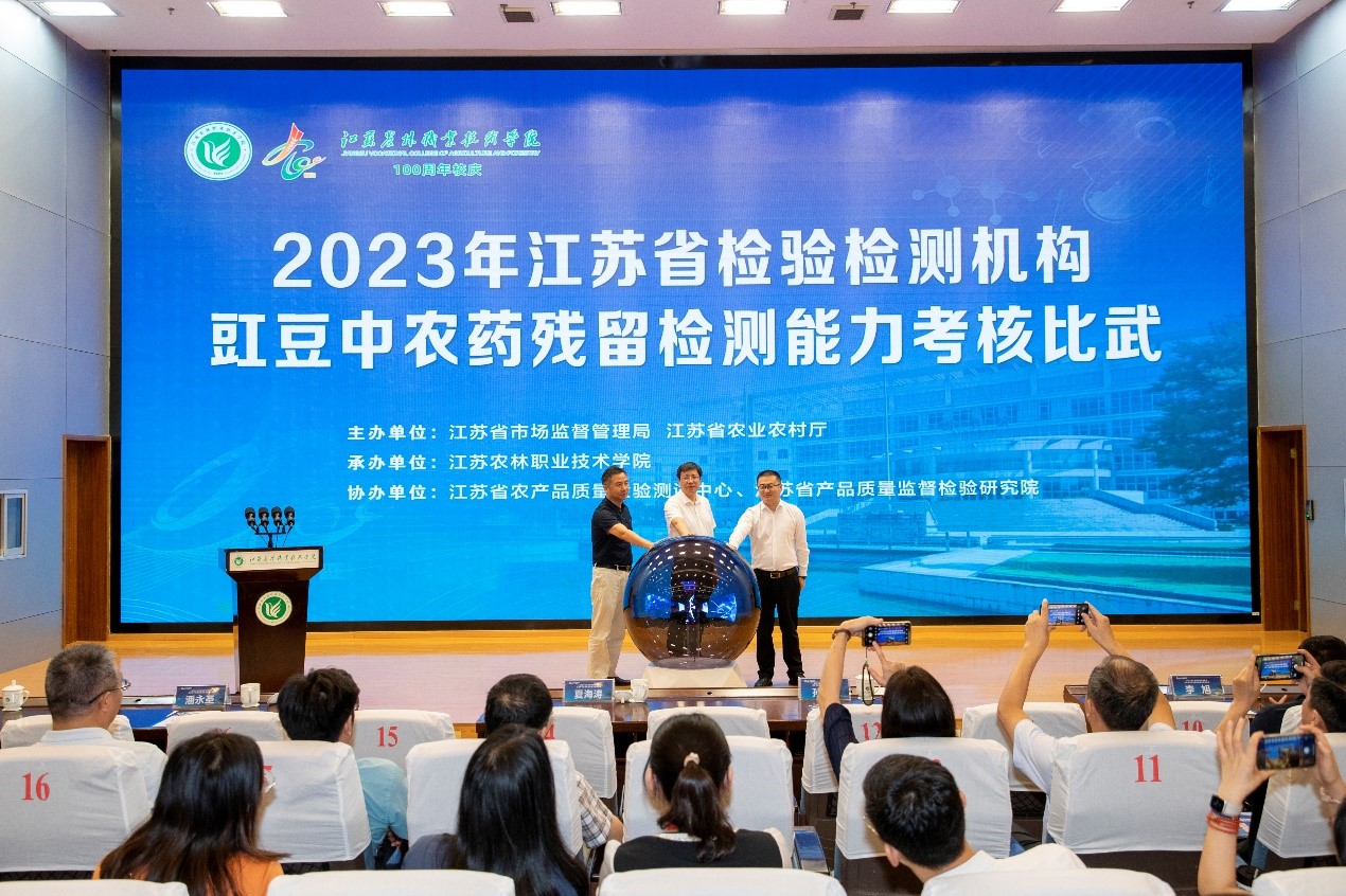 9月18日至20日,2023年江苏省检验检测机构豇豆中农药残留检测能力考核比武活动在学院举行,江苏省市场监管局副局长夏海涛,江苏省农业农村厅副厅长孙翔,必赢bwin官网登录入口党委副书记、院长潘永圣,党委委员、副院长毕德全,江苏省农业农村厅农产品质量安全监管处处长李旭等领导出席开幕式。开幕式由省市场监管局认可与检验检测监督管理处处长孙蔓莉主持。