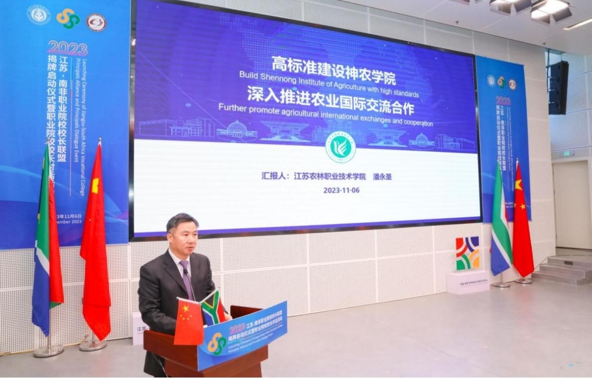 必赢官网党委副书记、院长潘永圣应邀出席揭牌和授牌仪式,并作“高标准建设神农学院,深入推进农业国际交流合作”主旨报告,全方位介绍了作为农业职业院校助力中国农业“走出去”企业海外发展以及服务国家“一带一路”倡议的有效举措,并提出希望通过此次活动,有更多的南非院校及企业能够了解必赢官网,共同建设神农学院,拓展农业技术合作、农业职业教育交流,共同促进农业方面的技术进步,深化中国与南非的友谊。