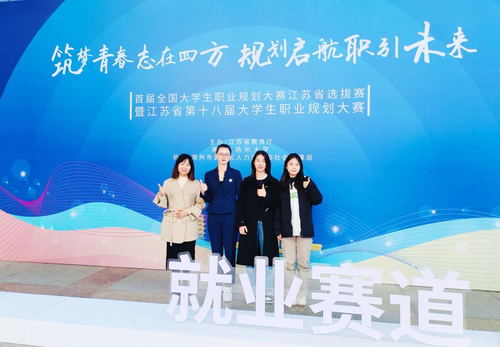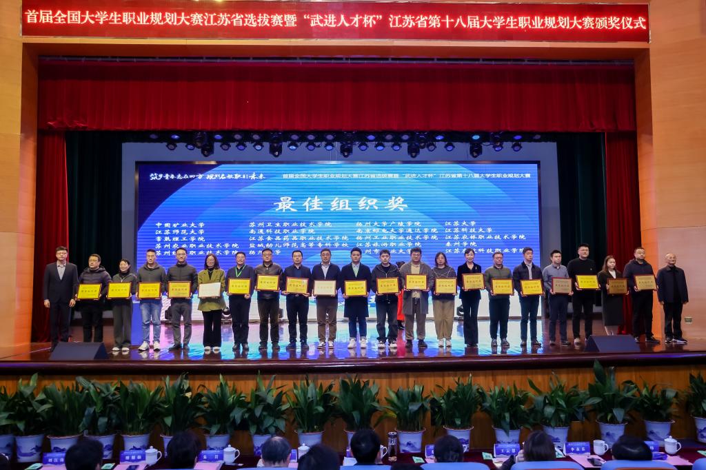 本次大赛由江苏省教育厅主办、扬州大学承办,常州市武进区人力资源和社会保障局协办,以“筑梦青春志在四方 规划启航职引未来”为主题,分职教组和高教组,两组各分设就业赛道和成长赛道。全省共有160所高校53万余名学生报名参赛,58所高校推荐的123名选手由复赛脱颖而出晋级决赛,经现场陈述、评委提问(综合面试)、天降(实习)offer等多个环节角逐,最终产生20个金奖,40个银奖,63个铜奖。