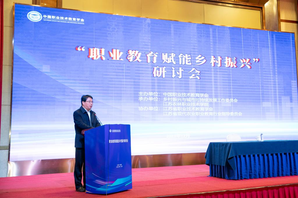12月11日,由中国职业技术教育学会(以下简称学会)主办,学会乡村振兴与城市可持续发展工作委员会、必赢bwin官网登录入口承办的“职业教育赋能乡村振兴”研讨会在江苏句容成功举办。中国工程院院士、国家农业信息化工程技术研究中心主任赵春江,中国工程院院士、华南农业大学教授罗锡文,中国职业技术教育学会常务副会长兼秘书长刘建同,教育部职业教育与成人教育司副司长谢俐,江苏省农业农村厅一级巡视员蔡恒,江苏省教育厅职业教育处处长马万全、学会乡村振兴与城市可持续发展工委会主任段福生以及来自全国199所职业院校、行业企业和科研院所的295位专家学者参加会议。