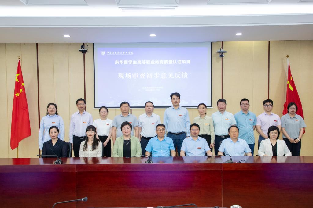 在5月17日的现场审查意见初步反馈会上,专家组反馈了此次认证现场审查的初步意见。专家组认为,学院是中国特色高水平高职学校(A档)建设单位,综合实力强,办学特色明显,在学院党委的领导下,国际化办学思路清晰,学院建有高效的来华留学生管理与服务体系,来华留学生办学专业与“一带一路”沿线国家产业发展高度匹配。学院本着“说好中国话,学好中国文化 ,讲好中国故事,练好专业技能,做好中外文化交流的使者”的“五好”育人准则,培养了一批知华、友华、爱华的来华留学人员。同时,专家组提出建议,学院应进一步统一思想,提升学院留学生工作一盘棋的理念,增强师资队伍建设、加强留学生生源国需求的研究,扩大留学生招生规模、改善留学生住宿环境、加强管理服务水平与中国国情教育及文化教育力度等,全面提升来华留学教育及管理工作水平。