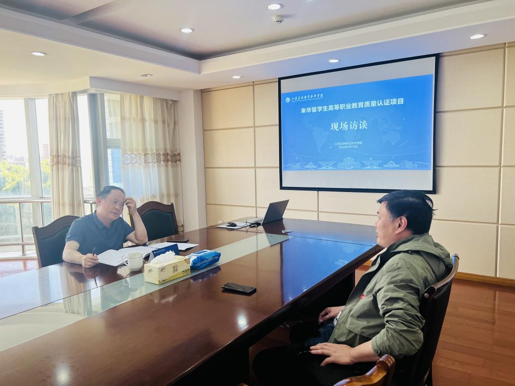 5月15日至17日,中国教育国际交流协会组织来华留学生高等职业教育质量认证专家组对学院进行现场审查。学院党委书记简祖平、党委委员、副校长颜志明、王瑾以及来华留学生归口管理部门、职能部门负责人、教师和留学生代表参加了此次现场审查的相关活动。颜志明主持现场审查说明会,王瑾主持初步意见反馈会。