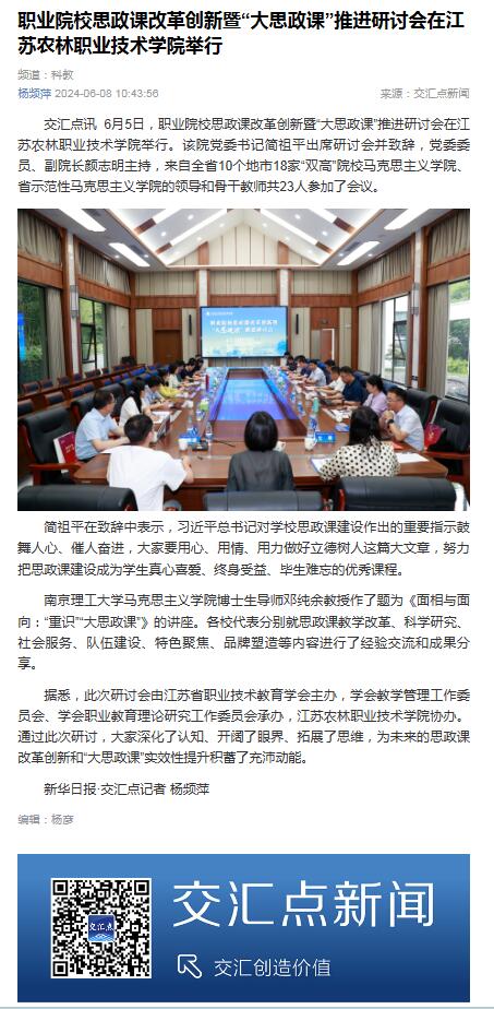 新闻链接:职业院校思政课改革创新暨“大思政课”推进研讨会在必赢bwin官网登录入口举行